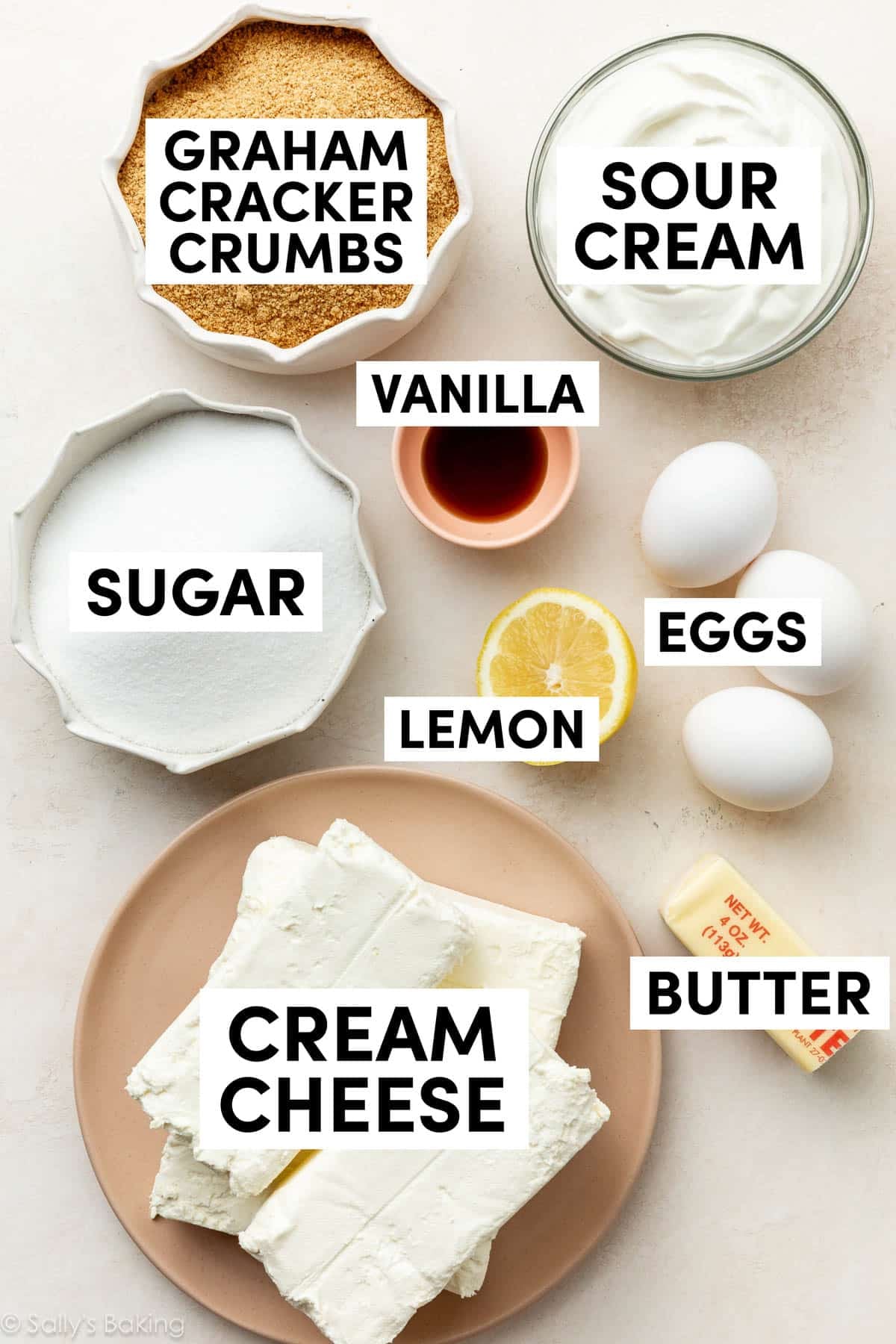 You only need a few basic staple ingredients for this cheesecake recipe.